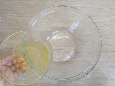 Per preparare le meringhe al cioccolato adagiate gli albumi a temperatura ambiente, in una ciotola ampia, e iniziate a montare con le fruste elettriche.