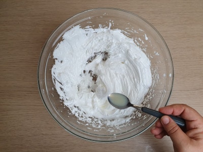 In ultimo, unite un cucchiaino di succo di limone. Montate il tutto per 10 minuti, fino ad ottenere una meringa lucida e consistente.