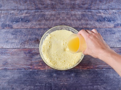 Aggiungete anche il succo di arancia e mescolate nuovamente con le fruste elettriche.
