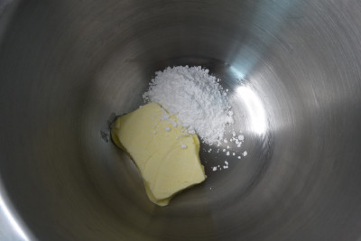 Lavorate il burro morbido con lo zucchero a velo e aggiungete i tuorli leggermente sbattuti, in due o tre volte.