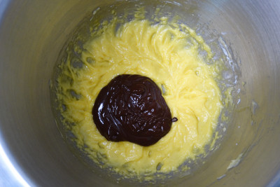 Aggiungete il cioccolato fondente fuso e mescolate.
