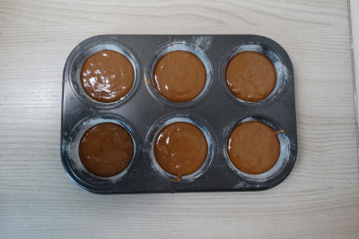 Imburrate e infarinate 8 stampi da muffin e versateci dentro il composto.