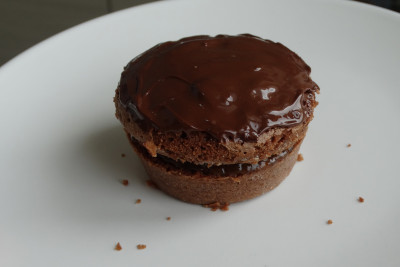 Decorate con del cioccolato fondente fuso e servite i vostri muffin di torta Sacher!