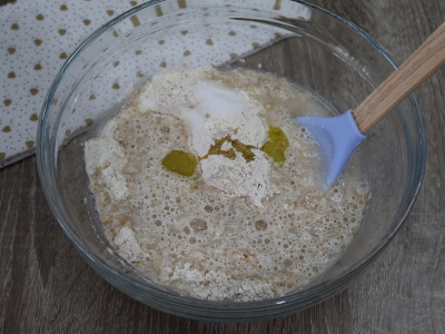 Posizionate l’impasto ottenuto all’interno di una ciotola capiente. Coprite con della pellicola trasparente e mettete il tutto a lievitare nel forno spento ma con la luce accesa per almeno 1 ora. L’impasto dovrà raddoppiare il suo volume.