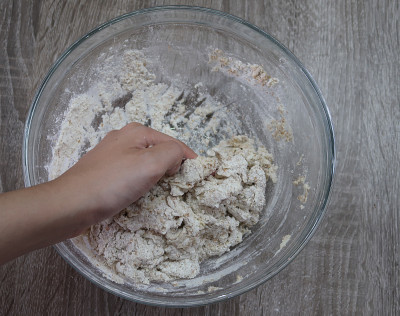 Impastate per bene con le mani fino ad amalgamare gli ingredienti. Lavorate l’impasto all’interno della ciotola o, se preferite, trasferitevi su una spianatoia.