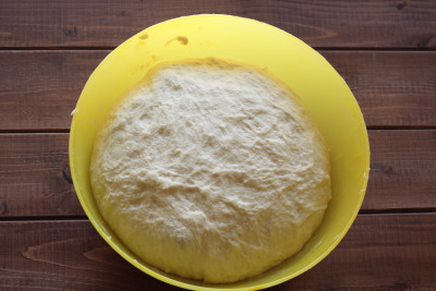 Trascorse le due ore, l’impasto dovrebbe esser raddoppiato, se così non fosse, aspettate fino al suo raddoppio. Oleate una teglia grande quadrata o la leccarda del forno. Versate l’impasto sulla teglia e con le mani oleate, senza stressare troppo l’impasto, allargatelo fino a coprire l’intera superficie. Coprite e lasciate lievitare altre due ore.