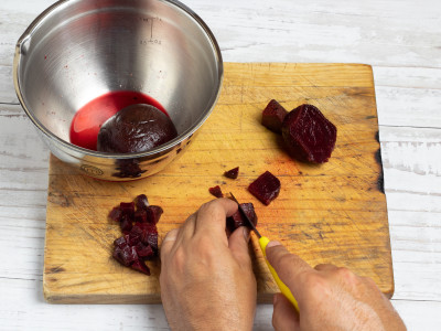 Infine versate il succo di limone e la rapa rossa precotta, mescolate il tutto con una spatola, disponete in un piatto da portata e servite ben freddo.
