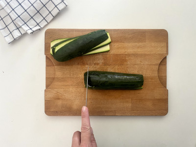 Trasferisci le zucchine in uno scolapasta, cospargile col sale e aggiungi il succo di un limone filtrato attraverso un colino a maglie fitte. Lasciale marinare per almeno 2 ore rigirandole di tanto in tanto.
