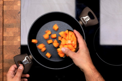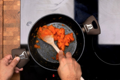 Mescola e copri con un coperchio. Lascia cuocere mescolando per circa una decina di minuti, o almeno fino a che la zucca non risulterà morbida.