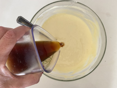 Unisci infine il caffè, avendo cura di versarlo a poco a poco per farlo amalgamare all’impasto.