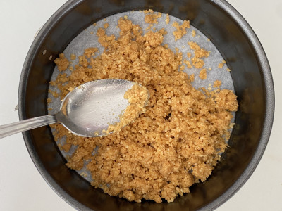 Per prima cosa, occupati della base della cheesecake cotta.
