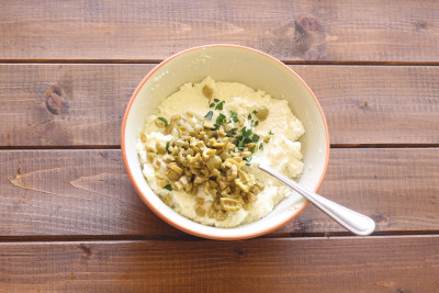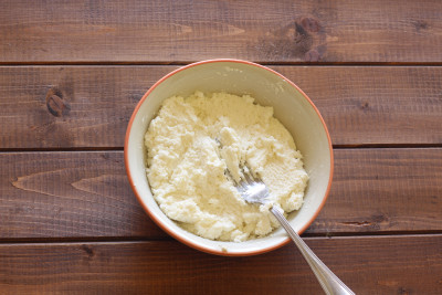 Mescola velocemente con una forchetta per rendere la ricotta cremosa.