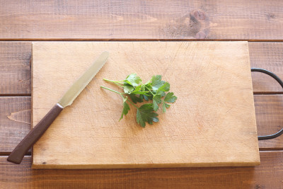 Taglia a pezzettini le olive verdi denocciolate, tenendone da parte 3 per la decorazione finale.
