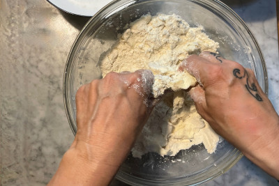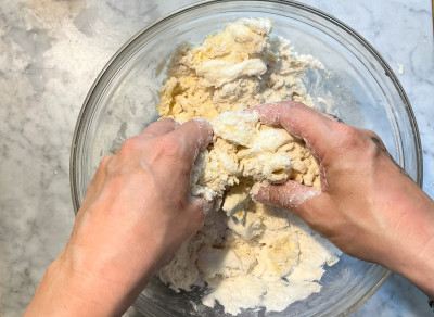 Lavora ancora il composto con i polpastrelli, abbastanza velocemente per non scaldare troppo il burro: devi ottenere delle briciole di varie dimensioni, a questo punto la frolla sbriciolata è pronta per essere utilizzata al tuo bisogno.