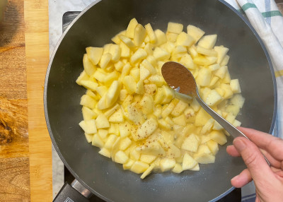 Aggiungi la cannella in polvere, mescola e cuoci circa 5 minuti, poi lascia intiepidire.