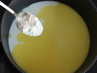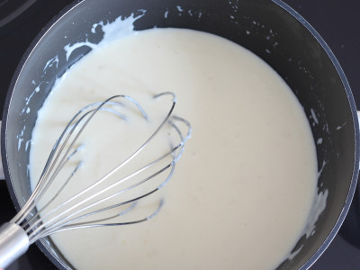 A questo punto aggiungi il sale e la farina, mescola velocemente con una frusta e rimetti sul fuoco, lascia cuocere 5 minuti continuando a mescolare. Continua fino a che la crema non si sarà addensata.