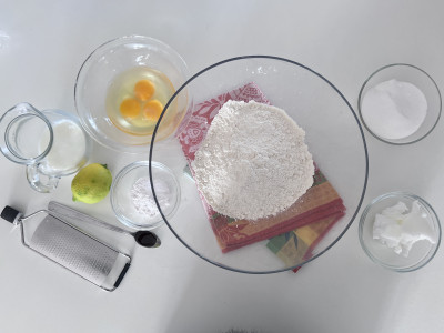 Unisci anche il lievito setacciato e completa con la scorza di limone e l’essenza di vaniglia.