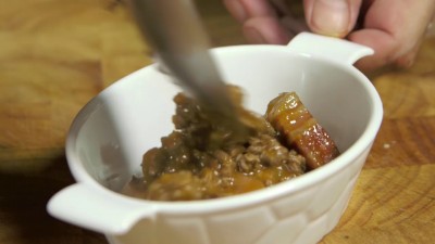 Trasferisci il purè di patate in una sac à poche e distribuiscilo a ciuffetti su tutta la superficie del ragù, di fatto coprendolo.