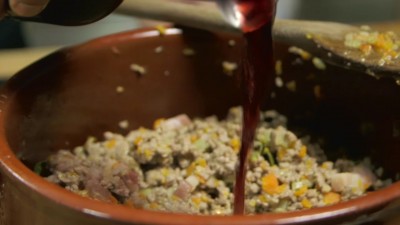Mescola bene con un cucchiaio di legno, chiudi con il coperchio e fai cuocere a fuoco basso e costante per almeno 40 minuti.