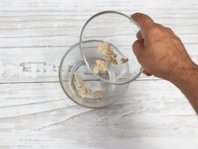 Per prima cosa, nella realizzazione dei fiori di zucca fritti, devi iniziare dalla pastella. Prendi una ciotola aggiungi il lievito sbriciolato ed un pò d’acqua che va presa dai 220 gr che ti serviranno in seguito. Emulsiona acqua e lievito con una frusta.
