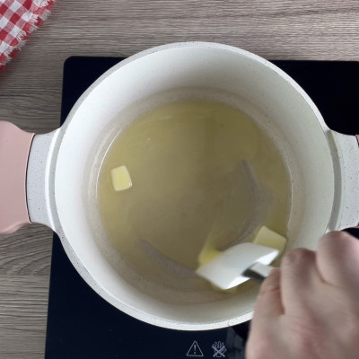 In un pentolino sciogli il burro, questa operazione va fatta a fuoco dolce per evitare che il burro si scurisca rovinando irrimediabilmente la preparazione.