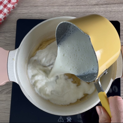 Aggiungi la farina al burro sciolto e mescola fino a che non si sarà formata una sorta di crema.
