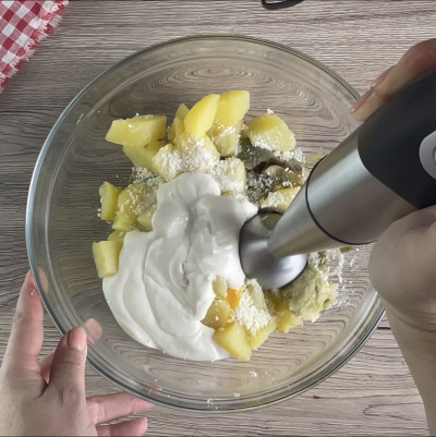 Frulla tutto con un frullatore ad immersione fino ad ottenere una crema morbida e priva di grumi.