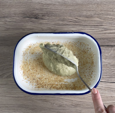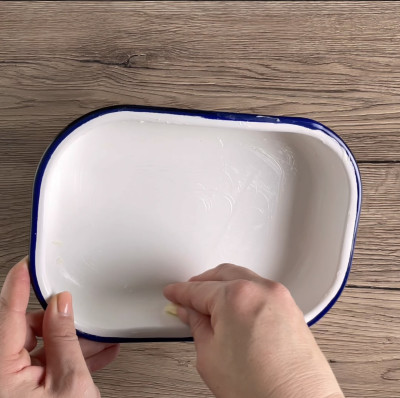 Ungi di burro una teglia da forno, spolverizzane il fondo con del pane grattugiato.