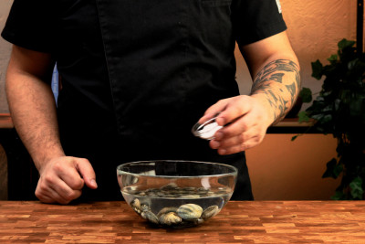 Per realizzare gli spaghetti allo scoglio, comincia facendo spurgare le vongole in acqua fredda leggermente salata per circa 1 ora.