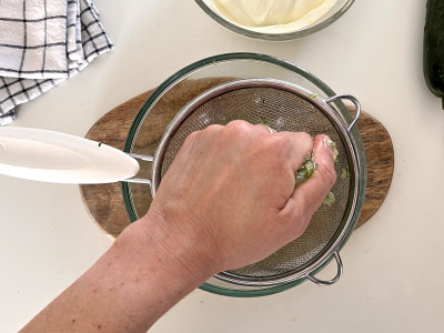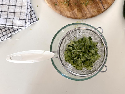 Trasferisci la polpa del cetriolo in un colino, mettici sopra un peso e lascia scolare per circa un’ora.