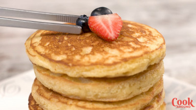 Servi i pancakes singolarmente o tagliando la pila di pancakes a fette come fosse una torta.