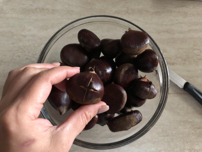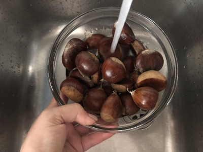 Ecco come preparare dei deliziosi bon bon di castagne: per prima cosa lava le castagne così elimini eventuali residui di polvere, poi asciugale velocemente con un canovaccio e, infine, pratica due tagli a croce sulla parte bombata delle castagne, utilizzando un coltello affilato.