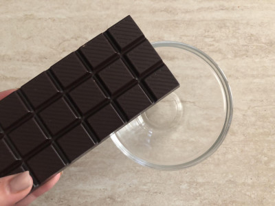 Taglia il cioccolato a pezzetti, versalo in una ciotola di vetro e scioglilo al microonde utilizzando la funzione scongelamento, sarà pronto in 4 o 5 minuti, se non hai il microonde, puoi sciogliere il cioccolato a bagnomaria.
