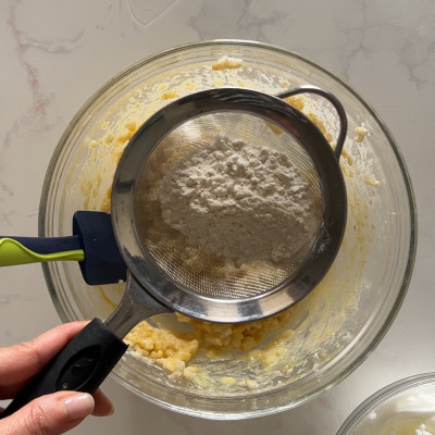 Setaccia la farina con il lievito e incorporala completamente al riso.