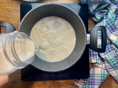 Ecco come cucinare con facilità questi deliziosi gnocchi di semolino vegani: in una casseruola versa la bevanda vegetale(andranno bene riso, soia, avena, farro, purché non siano zuccherati) aggiungi l'olio di semi e il sale e porta al limite del bollore. A questo punto abbassa la fiamma e versa a pioggia il semolino mescolando con una frusta a mano per evitare che si formino grumi