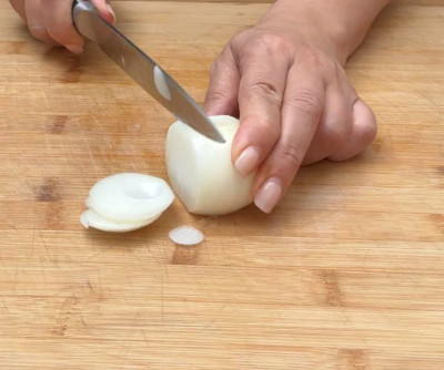 Affetta la cipolla e mettila in una padella insieme al burro. Fai stufare la cipolla a calore basso mescolandola spesso.