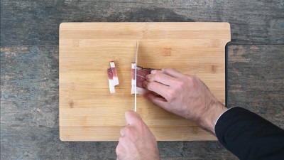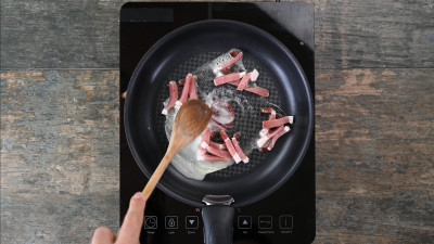 Intanto scalda una piccola noce di burro in un'altra padella e fai rosolare lo speck rimasto, facendolo diventare croccante.