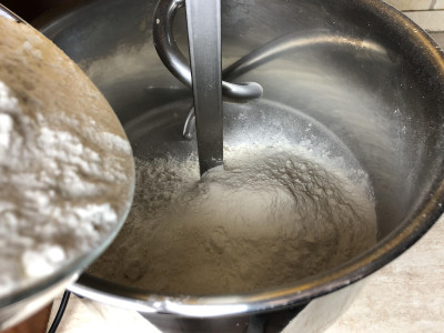 Aggiungi il lievito direttamente sulla farina, poi aggiungi il latte freddo, a filo, man mano che verrà assorbito dall'impasto.