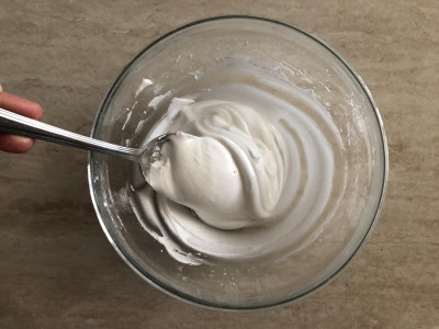 Mentre i pezzi di casa si raffreddano, inizia a preparare la ghiaccia: versa l'albume in una ciotola, inizia a lavorarlo con le fruste elettriche, aggiungi lo zucchero a velo poco alla volta e continua a lavorare fino ad ottenere una glassa liscia e cremosa.
