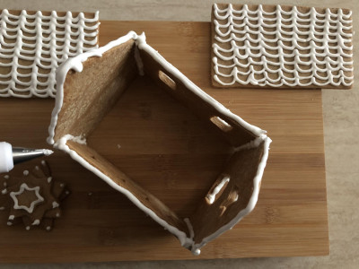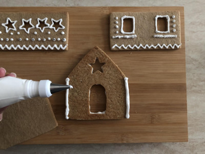 Prepara i pezzi della casetta utilizzando degli appositi stampi, una volta pronte le pareti della casa, intaglia porte, finestre e decorazioni a tuo piacimento o in base alle formine che hai a disposizione.