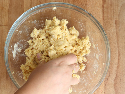 Quando il pangrattato avrà assorbito completamente le uova, ribalta l'impasto sul piano di lavoro e impasta, compattando in un panetto.