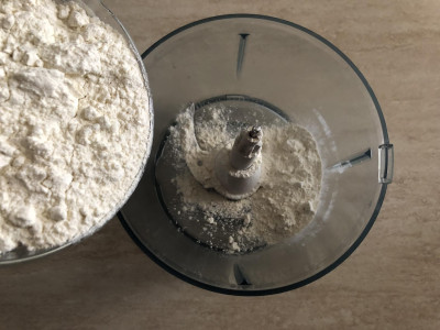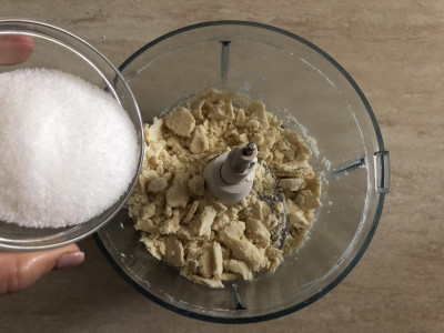 Ecco le semplici istruzioni da seguire per cucinare in casa i biscotti di vetro: versa la farina e il burro in un robot da cucina o, se preferisci, puoi utilizzare una planetaria o impastare direttamente a mano. Amalgama velocemente gli ingredienti fino a ottenere un composto piuttosto sabbioso, aggiungi un pizzico di sale.