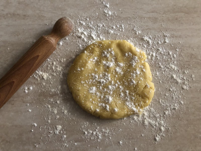 Trascorso il tempo previsto per il riposo, tira fuori l'impasto dal frigorifero, stendilo con un mattarello sul piano da lavoro, precedentemente infarinato, servirà uno spessore di due o tre millimetri circa. Taglia i biscotti con le formine, utilizza la stella più grande e poi taglia all'interno con una più piccola.