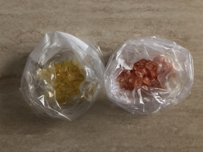Scarta le caramelle dal loro involucro, separa le caramelle in base al colore, metti ogni colore in un sacchetto da freezer. Frantuma le caramelle con un batticarne liscio o con un mattarello o, in alternativa, con un oggetto pesante.