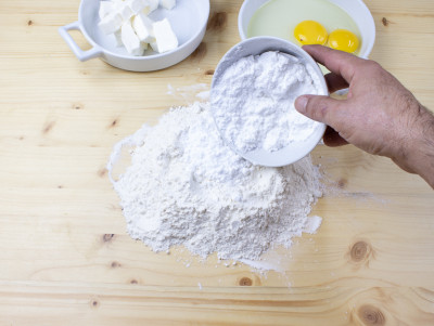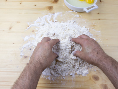 Lavora velocemente gli ingredienti con le punta delle dita, aggiungi le uova e continua ad impastare, amalgama bene l'impasto. Forma una palla e avvolgila con pellicola trasparente, metti l'impasto in frigo e fallo riposare per almeno 2 ore.