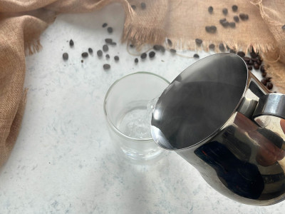 Vediamo insieme come cucinare un buonissimo Irish coffee: porta a bollore dell'acqua e riempi il bicchiere (deve essere resistente al calore). In questo modo andrai a riscaldare e tenere al caldo il bicchiere. Dopo qualche minuto elimina l'acqua e versa nel bicchiere un po' di caffè lungo, caldo.