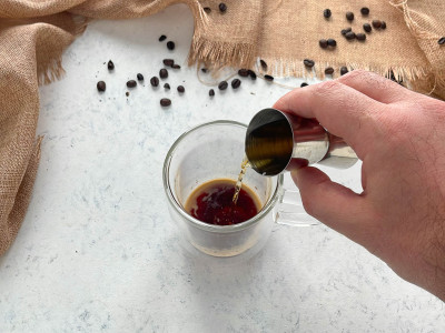 Aggiungi il whisky e, infine, il resto del caffè lungo caldo.