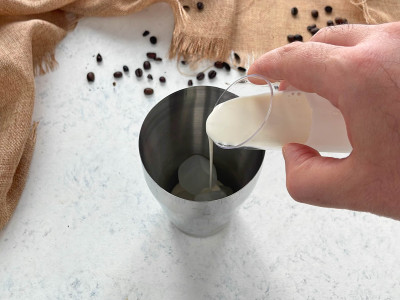 Ora prendo uno shaker, mettici del ghiaccio e la panna ben fredda. Shakera per qualche secondo e versa la panna attraverso uno strainer. In questa operazione aiutati con un cucchiaino in modo da far cadere la panna il più delicatamente possibile sulla superficie del cocktail così da creare il tipico strato denso.