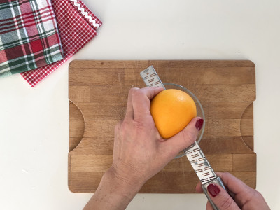 Vediamo insieme come cucinare il torrone siciliano in modo semplice e veloce: per prima cosa, grattugia la scorza dell'arancia e mettila da parte. Taglia l'arancia a metà e ricavane il succo con uno spremiagrumi.
