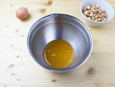 Ecco le istruzioni per cucinare in casa il torrone tradizionale classico: metti il miele in una ciotola, poi metti la ciotola dentro ad un tegame più ampio e pieno per 1/4 di acqua e fai cuocere a bagnomaria per 1 ora circa, mescolando continuamente.